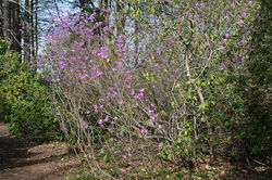 ![]() American Rhododendron (Rhododendron maximum) (5-15-2025) | ![]() | ![]() Pink-shelled azalea (Rhododendron vaseyi) (5-15-2025) |